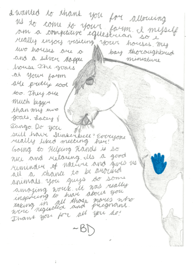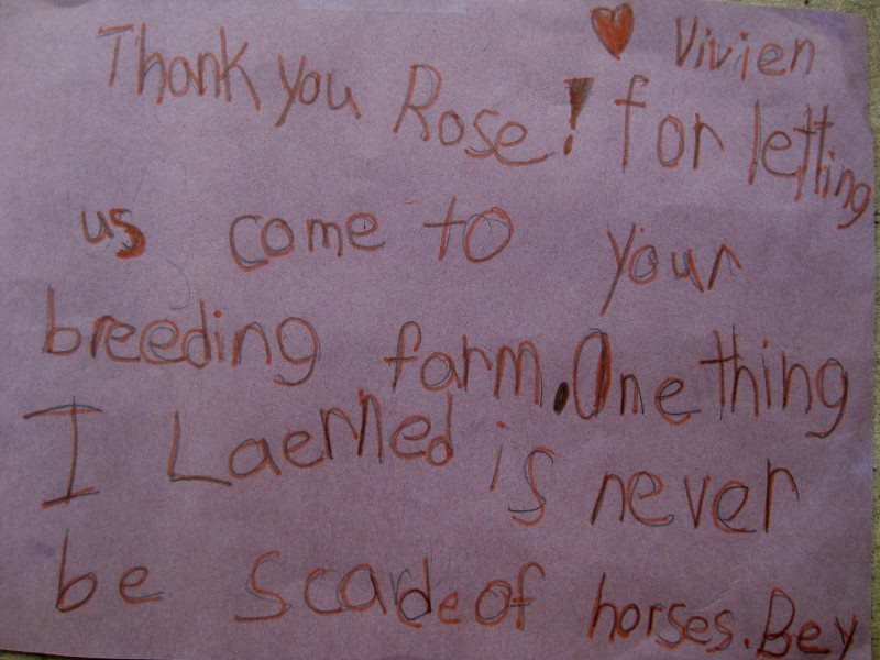 As my daughter Jessica is starting high school and we are talking about what she might like to do with her life, she says she wants to work with animals doing something like Rose does on her farm. She doesn’t want to be a veterinarian, but a trainer or rescue. Her plan at this point is to attend the America’s Teaching Zoo program at Moorpark College and the Arabian Horse Unit at Cal Poly Pomona. God had given her an amazing role model to look up to. Rose I thank you for the example you are for her as she grows and discovers what she wants to be. She is hoping to intern with you in her college years. From the very first visit in California Rose said it was a healing property. I call it my sanctuary. When I get stressed and I need to escape life, I revisit the farm through my pictures and videos. The farm is such a part of who I am that it is in my thoughts on a daily basis. I have the picture of Jimmy’s first smile on my fridge as a daily reminder of God’s love for me. The wallpaper on my phone and email screen are farm pics. I have come to see that the blessing of the farm is my reward for the painful trial that led me to that hilltop with Jimmy in the first place. If that ugly hatred had not happened, I doubt that I would have ever considered driving 1,000 miles to see a horse smile. Now it is just assumed that is where my girls and I will go every summer.