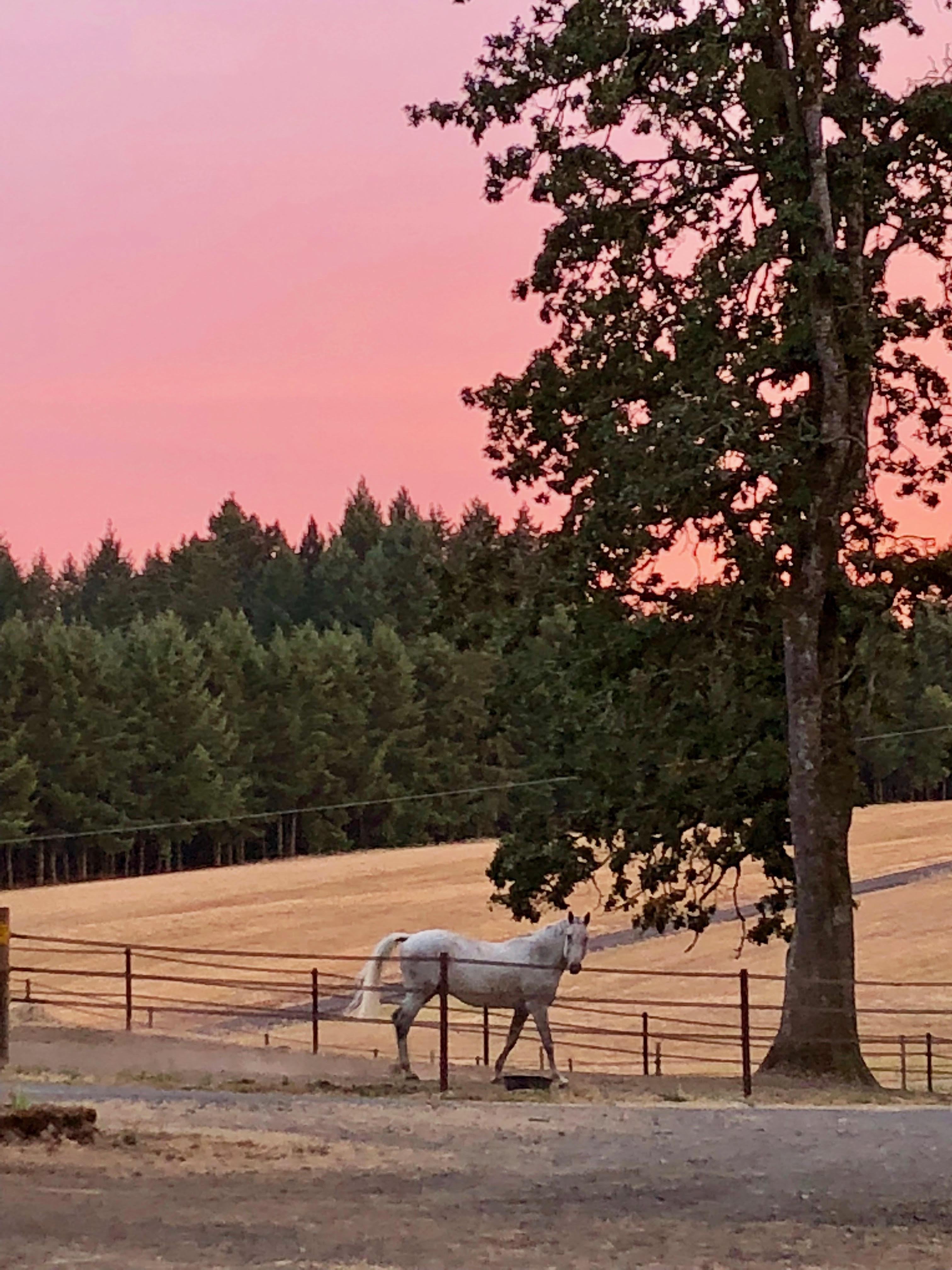 Soon after this Rose moved her farm to Oregon. I assumed I would never see her or Jimmy again as Oregon is so far away. Rose and I bonded during the time I had helped her pack up and get ready for the move. Actually, I offered to help her so I could spend time with the animals on breaks. She quickly became the sister I never had. Almost from the start she has felt like family and has welcomed and accepted my family into her home and her life. She said we would have to come visit but I wasn’t sure how it would happen. As I had kept talking about the amazing experience I had with Jimmy and wanting to see him again, or have God speak to me again through him, my husband encouraged me to take our girls up for a visit as he could not take time off work to go with us. I had never done anything like that before but I drove 1,000 miles to see Jimmy and Rose, of course. We were only able to stay for 8 days. It was the most amazing time I had ever had. It was a great adventure for me and my girls. 20 acres, 40+ horses, baby goats and their mammas, bunnies, chickens, roosters, ducks. Rose welcomed us with open arms and gave us carte blanche to her home and her farm. The day after we arrived, I went in search of Jimmy. I was almost desperate to have God speak to me again. After searching almost the entire farm, I was in the last corral with about 8 horses who were almost all the right color but had fly masks so I couldn’t see their faces. I was a bit overwhelmed when I realized I was completely surrounded by these beautiful horses who all wanted my attention. I started talking in an attempt to keep myself calm. I was scratching a horse that I thought could be Jimmy but he wasn’t smiling. I said, “I think this is you Jimmy but I really need to see you smile so I know for sure it is you.” I was in shock as he turned his head towards me with a huge smile! From that moment on, I knew that was only the first of many visits to the farm. I have not had another encounter like the one on the hill in CA, but I know that is where I feel closest to Him as all encumbrances of my life are not present.